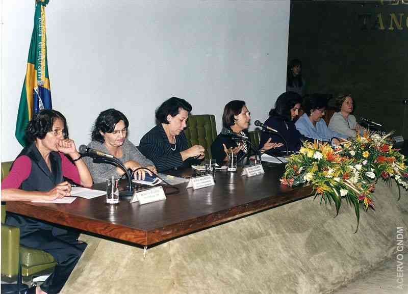Mireya Suarez (UNB), Sonia Malheiros (CFEMEA), Eliana Calmon (ministra do Supremo Tribunal de Justiça (senadora). Autoria não identificada.